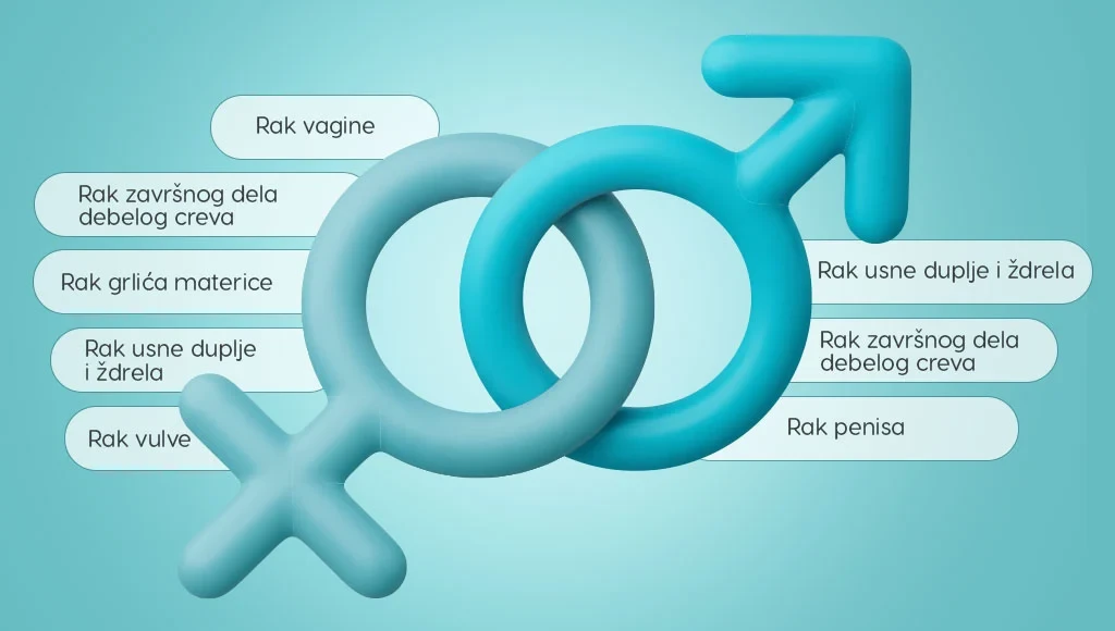 HPV virus (humani papiloma virus) predstavlja grupu od preko 200 virusa koji su izuzetno rasprostranjeni među ljudima. Smatra se da će skoro svaka seksualno aktivna osoba tokom života biti zaražena nekim tipom HPV-a, neki podaci govore da se čak 80% ljudi zaraze HPV-om tokom života. Većina infekcija prolazi neopaženo i spontano, ali pojedini visokorizični tipovi HPV-a mogu dovesti do ozbiljnih zdravstvenih posledica, uključujući rak grlića materice, orofaringealne (grlo, kranici, jezik), genitalne i analne karcinome. U nastavku pišemo o tome šta je tačno HPV, kako se prenosi, koji su simptomi infekcije, koje bolesti može izazvati kod žena i muškaraca, kako se leči i na koji način se može sprečiti.
