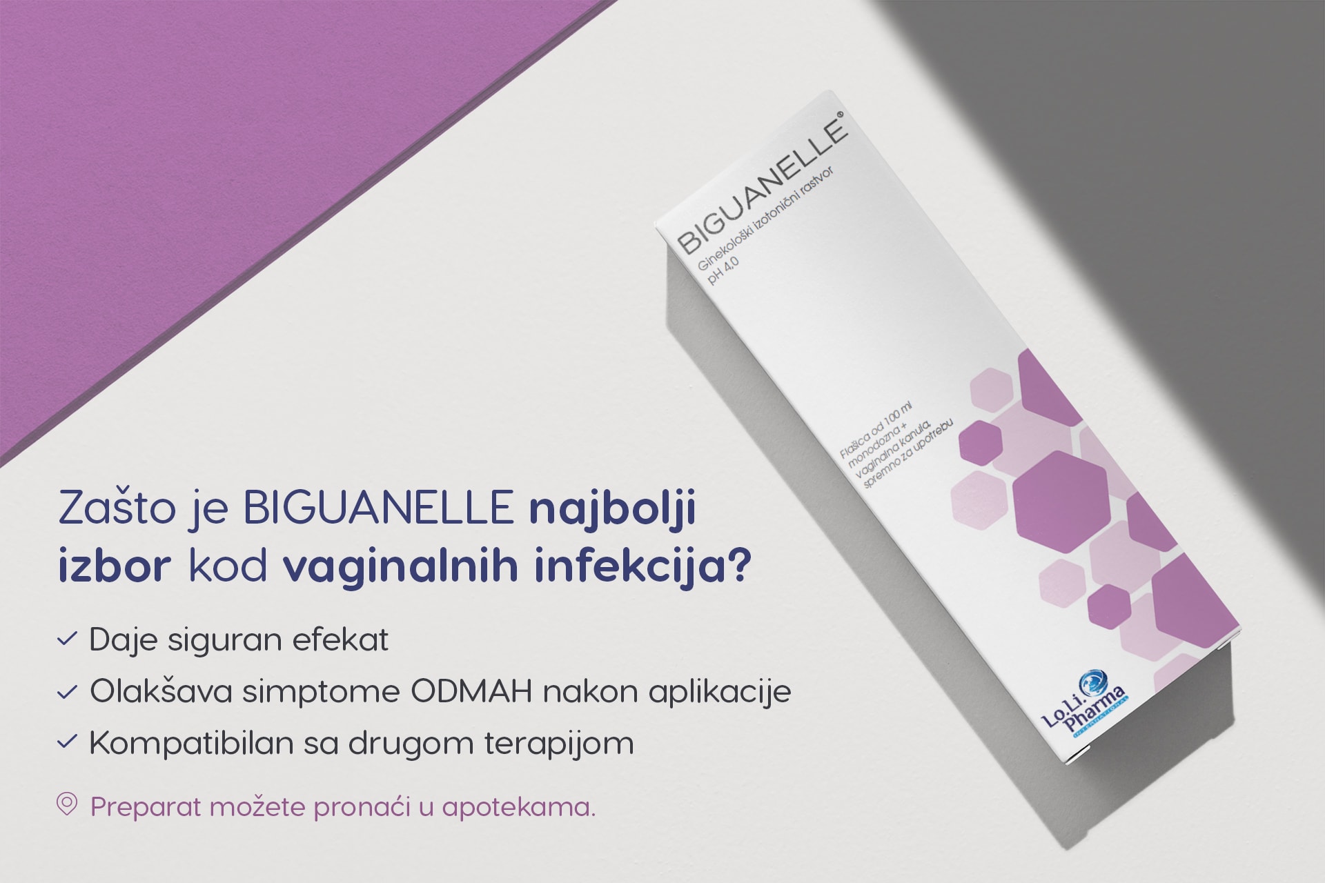 Korišćenje menstrualnih čašica je odlična ideja jer su ekološki prihvatljive i napravljene su od silikona, a ne štete koži. Menstrualna čašica može zadržati više krvi od drugih metoda, što dovodi mnoge žene da ih koriste kao alternativu tamponima. U zavisnosti od vašeg protoka, možete nositi čašicu 6-12 sati.Tokom letnjeg perioda, mnoge žene smatraju da su tamponi bolje rešenje, ali odluka da li ćete koristiti uložak, tampon ili menstrualnu čašicu ostaje na Vama.Kako se bliži leto i svi željno iščekujemo godišnje odmore i letovanja, žene u ovom periodu treba da budu posebno oprezne kada je u pitanju zaštita od vaginalnih infekcija. Naime, leti se dosta koriste bazeni i spa centri koji su idealna sredina za razvijanje patogenih mikroorganizama. Upravo kada ste na letovanju može da se desi da dobijete simptome vaginalne nelagodnosti, svrab ili iritaciju. U takvim situacijama, brzo i efikasno rešenje je Biguanelle gel-rastvor.Zbog svog specifičnog načina aplikacije i sastava olakšaće tegobe u roku od 20 minuta i moći ćete bezbrižno da se vratite svojim aktivnostima.Biguanelle gel rastvor u svom sastavu sadrži antiseptik koji direktno deluje na bakterije, gljivice i viruse tako da ne narušava prirodnu vaginalnu mikrofloru.Takođe, sadrži i mlečnu kiselinu koja održava vaginalnu sredinu kiselom - pH vrednost između 3,4 - 4,5. Ova prirodna kiselost je važna, jer bakterije koje izazivaju bolesti ne mogu da rastu i da se razmnožavaju u kiseloj sredini. Mlečna kiselina služi i kao “hrana”  dobrim bakterijama, pomaže njihovom razmnožavanju i samim tim povećava odbrambenu moć vagine od mikroorganizama.Stoga, ako ste skloni čestim vaginalnim infekcijama preporuka je da se posle svakog menstrualnog ciklusa isperete Biguanelle gel-rastvorom. Redovnom upotrebom Biguanelle gel rastvora bićete mirne i sigurne da Vas vaginalna infekcija neće zadesiti u toku letnjih dana. I ne zaboravite da ga uključite u sastavni deo Vaše putne torbe, pogotovo ako znate da ćete koristiti bazene ili spa centre.